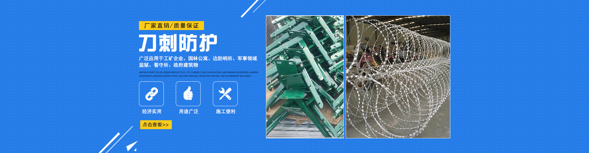 安平初日絲網(wǎng)有限公司是一家專業(yè)的絲網(wǎng)生產(chǎn)銷售廠家,主要產(chǎn)品有刀片刺繩、刺絲滾籠、刺繩支架等產(chǎn)品,公司為客戶提供產(chǎn)品知識(shí)和新鮮是市場行情,回答用戶產(chǎn)品相關(guān)問題,幫助用戶更好的選購產(chǎn)品。